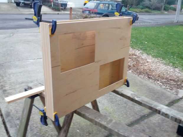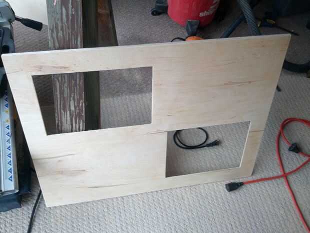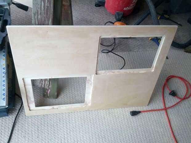 Cortar aberturas de tamaño de pantalla apropiada en madera contrachapada de 1/2".  Yo entonces enrutados a un 1/4" de las pantallas establecer en.