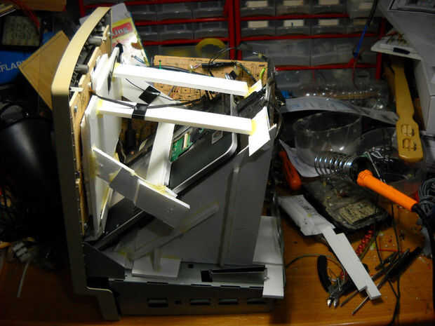 Mientras que es desarmar la pantalla y el plexi, trabajé en la curva de la plexi un poco más. Ahora coincide con la curva de la CRT perfectamente. Así se verá más como un CRT en Mawi.