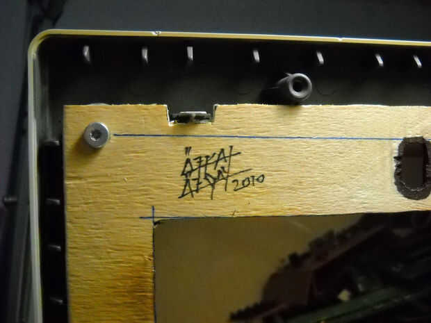 Autografió la estructura en madera contrachapada para la memoria :D