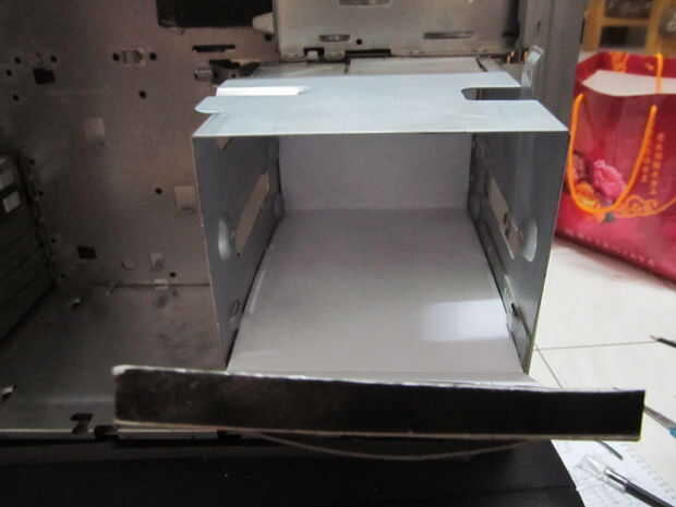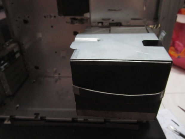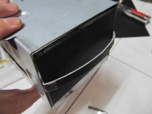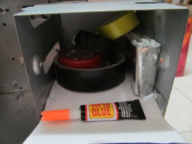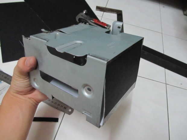 Acabo de martillado a unas lengüetas de metal obstruyendo y utiliza chatarra tablero de montaje para tapar los grandes agujeros