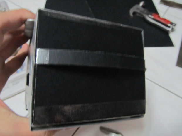 Hice la puerta un poco más alta por lo que sería capaz de cerrar el compartimiento principal y la ranura para almacenar tela de lija de papel
