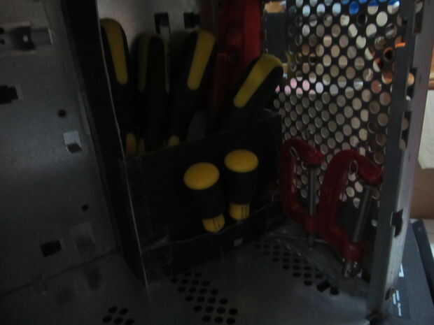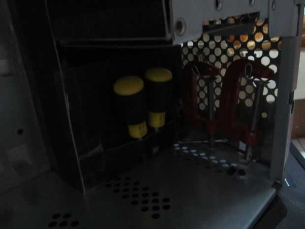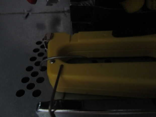 También hice un pequeño alambre de forma de zapato de caballo que sostiene la pistola de grapas para el piso de la caja