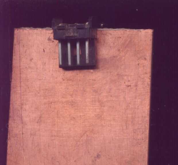 Un trozo de tablero ligeramente más ancho que el conector fue cortado a tamaño, alisados de bordes y agujeros perforados a aceptar el conector.