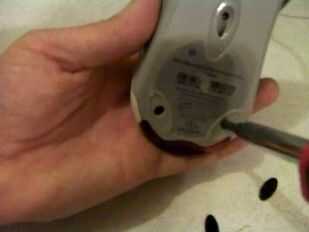 Una vez que encuentre el ratón quiere usarte necesita abrir hacia arriba, para ello, sacar los tornillos secreto que generalmente se encuentran debajo de las etiquetas engomadas o debajo de las alfombrillas de ratón de la parte inferior.