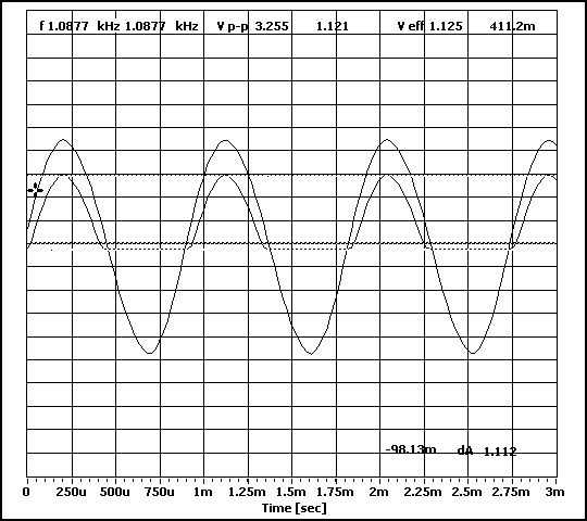 Aplicando la misma técnica, que mide el valor de pico de la onda rectificada y aplicando el desplazamiento correspondiente obtenemos la forma de onda en la siguiente figura.