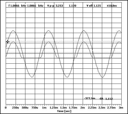 La primera figura muestra que la ola de pecado se centra alrededor de cero tiene un valor promedio de cero, pero la onda rectificada se instala en la parte aplanada de la forma de onda correspondientes al ciclo negativo por debajo de la línea cero en - 327mV.