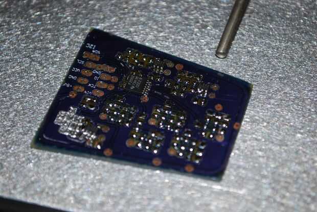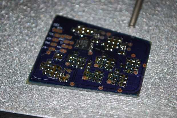 Orange Crush). Electricidad y fuego para arriba! Por cierto, accidentalmente corriendo demasiado alto la temp en la primera tabla y consiguió el efecto cool color degradado en la máscara de la soldadura como resultado (ver la foto de intro). Creo que los componentes eran todavía en especificaciones, pero no tenía un difusor de calor bien debajo de él en el tiempo, así que no puedo estar seguro de que la sonda estaba leyendo que estaba viendo el mismo temp la Junta. El tablero parece OK hasta ahora aunque...