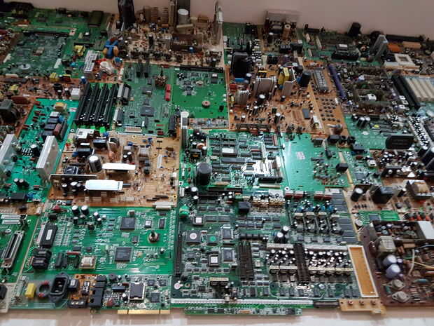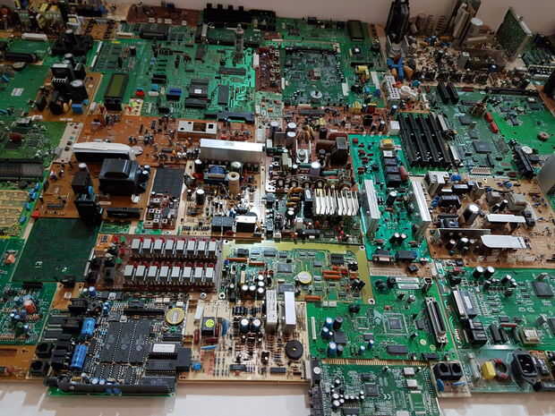 Montón de PCB de diferentes tamaños con componentes