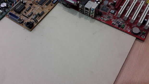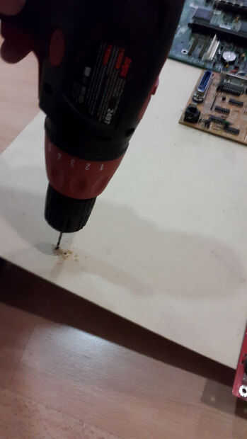 Coloque el PCB perforado en su lugar sobre el tablero del MDF y marca con un lápiz por los agujeros de puntos de anclaje para que pueda ver fácilmente dónde perforar el tablero.