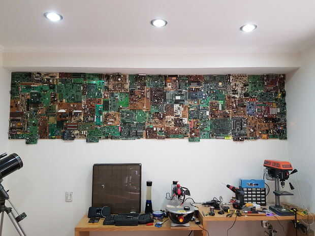 También puede ocultar los tornillos de la pared pegado algún condensador de repuesto en él.