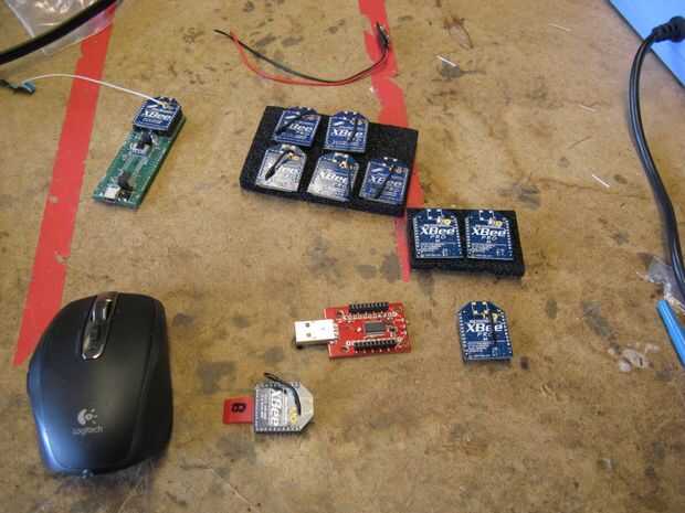 Un XBee se conecta directamente a la cuadrotor, en la parte inferior del tablero. (Superglued de la mina, para que no caiga hacia fuera durante aterrizajes.) El otro se conecta a un ordenador de la estación de tierra usando un adaptador USB XBee como los de Sparkfun XBee Explorer. Una ventaja XBee radios tienen sobre el equipo estándar de RC es que la información fluye ambas maneras. Comandos se envían desde la estación de tierra a la cuadrotor y telemetría se envía detrás.