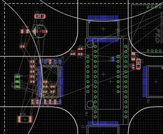 4pcb es un poco más grande que el límite de tamaño de 100x80mm Junta para el libre EAGLE Light Edition. Puso de a partir de este proyecto una de las razones era porque no quería pagar por la versión completa o cambiar a un software de diseño diferentes. Pero entonces descubrí algo interesante: el límite de tamaño de Junta aplica sólo la colocación de componentes. Pueden los rastros de la ruta, añadir agujeros y crear un contorno de la placa que se extienden lejos fuera de la caja de 100x80mm.