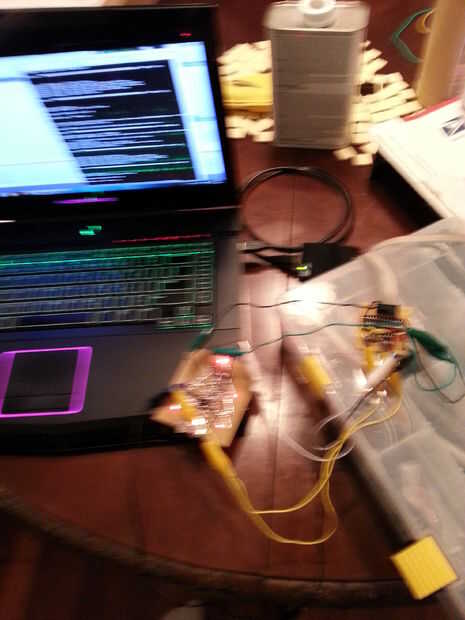 Estos cables será temporal, así que sujete siempre que puedas al circuito. Es probablemente más seguro no soldar a los pines del microcontrolador la derecha aunque... Lo siento no tengo buenas fotos de este. Era difícil tomar fotos al mi cámara no enfocar bien de cerca.