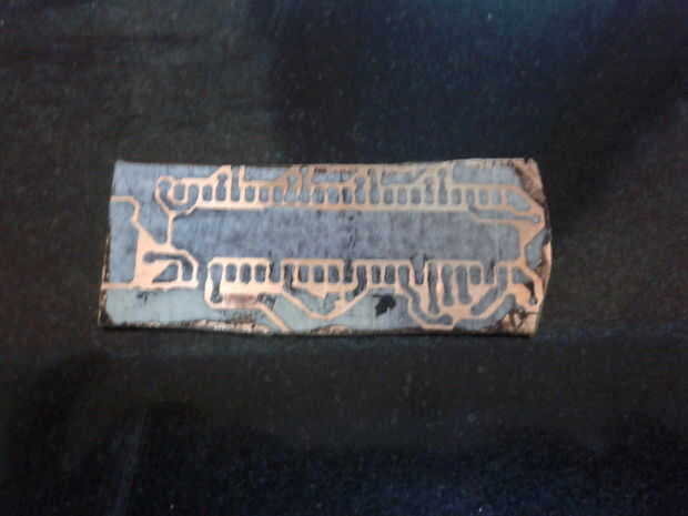 Paso #5: Ahora sumergir la placa en la solución de la aguafuerte y constantemente lo frota con el cepillo de dientes. En 30 segundos tienes tu PCB personalizado en tus manos. Lave el PCB en el flujo constante de agua después del grabado para eliminar la solución extra.