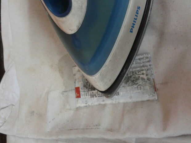 Paso #3: Ahora uso una plancha de ropa doméstica para transferir el toner del papel a la placa de cobre. Precaliente la plancha a la máxima calificación y colocarla sobre la placa de cobre. Aplique presión suavemente contra el tablero con la punta de la plancha de la ropa para que el tóner es transferido fácilmente a la placa de cobre.