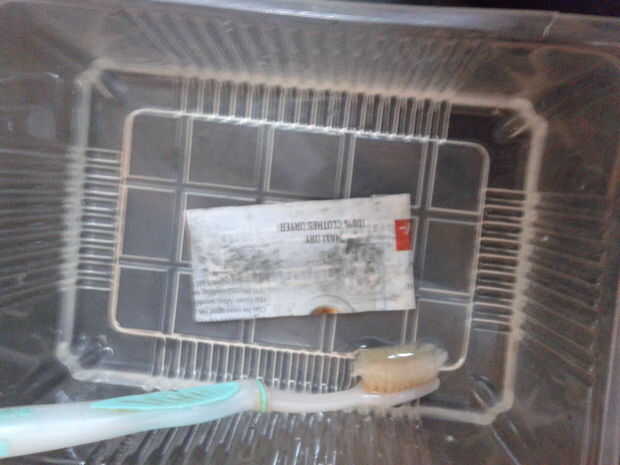 Paso 4: Después de transferir el toner, sumerja el PCB en agua contenida en un recipiente de vidrio y plástico (no tazas de metal pueden ser utilizado). Como el papel consigue empapado en agua, retire el papel con la ayuda del cepillo de dientes. Completamente, retire el papel para que todo el cobre extra se puede quitar.