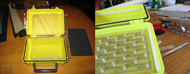 Ahora pasamos a meterlo en la caja, aquí dependerá de la caja de la dispongamos, así mostraré el ensamblaje que hecho yo, con la caja tenía. Pensaba poner en metacrilato para hacer las tapas transparentes de los dos lados, de tapa de la la "para delgado pero necesitaba algo más" arriba, ya el espacio es mucho menor, así opté por una tapa traslucida de una caja compre en el "todo un euro de las Naciones Unidas" de la esquina. Para la tapa de abajo puse el en metacrilato que ya tenía cortado, le da consistencia al conjunto ya es allí donde van a ir apoyados los clichés y el circuito impreso.