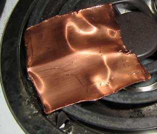 3. poner el cobre en una placa caliente para oxidar y suavizar el cobre.