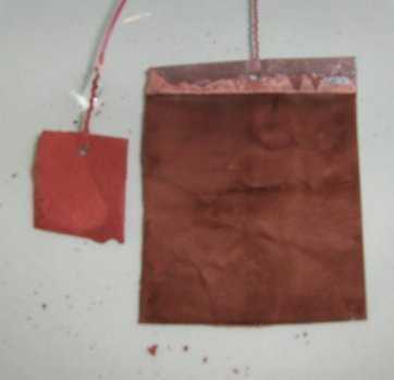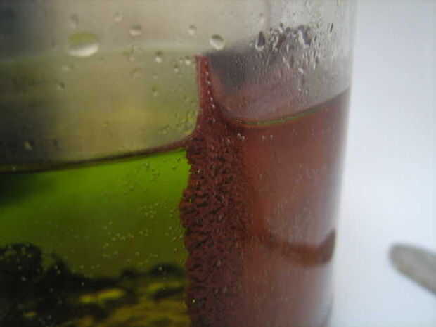 Puede terminar la reacción en cualquier momento que desee. Me decidí a correr unos 4-5 horas. En la foto están los electrodos durante y después del uso.