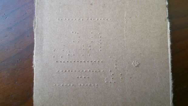 Usando una aguja de coser fina o punzón aguja, abrimos agujeros en el cartón donde los componentes de (TH) a través del agujero son exactamente.