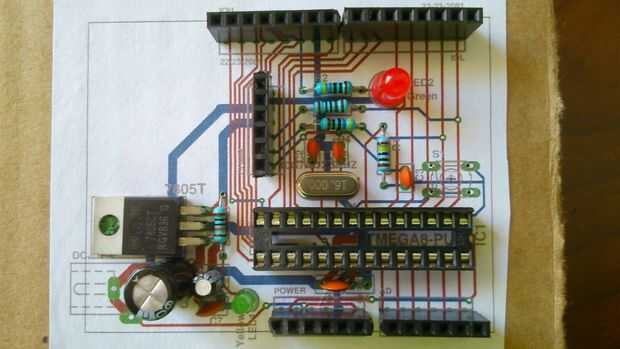 El último paso de este instructables muestra el resultado de insertar componentes a su PCB cartón hecho justo.