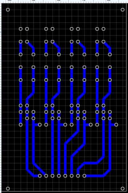 En primer lugar, usando su editor favorito como águila (o utilizar EasyEDA, un navegador basado y sin esquema y PCB editor, checarlo, es impresionante! www.easyeda.com), dibujar el PCB para ser, manteniéndolo todo en un 2, 54 mm (1/10 pulgada para métrico discapacitados;)) rejilla o cualquier agujero espaciado su veroboard es en.