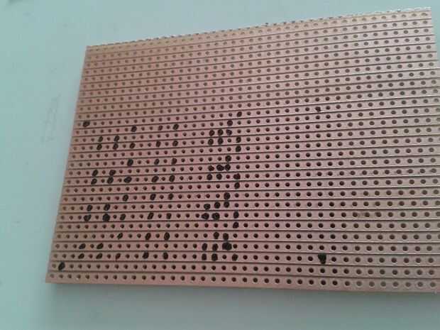 Ahora toma la cinta de doble cara o lo que usted planeó sobre el uso y fijar la placa en blanco a la Vero, alineación de uno de los rincones