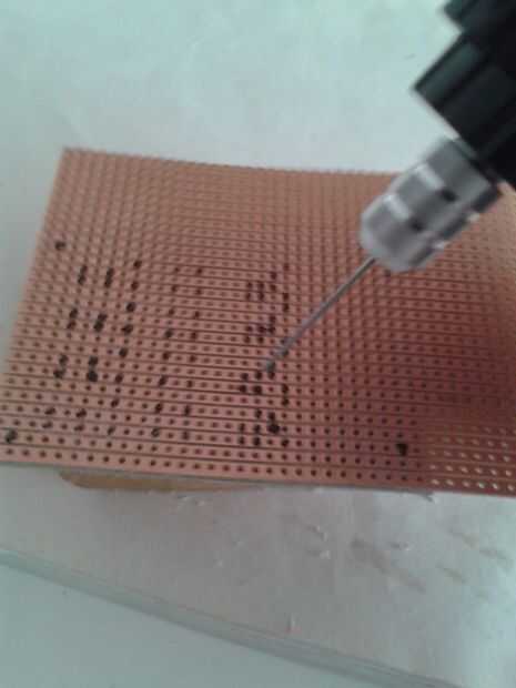 Sentarse a la Asamblea sobre un pedazo de madera de desecho y perfore todos los agujeros que ha marcado.