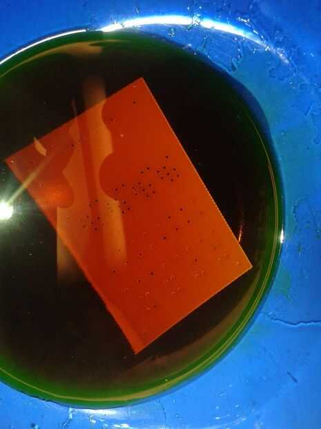 Ahora Asegúrese de que la novia/esposa/madre no es casa, conseguir un recipiente de vidrio de la cocina, calentar con agua caliente, vierta agua hirviendo 50/50/FeCl3 y etch lejos. No exagere, como lo hice o se grabe a sus rastros más finos.
