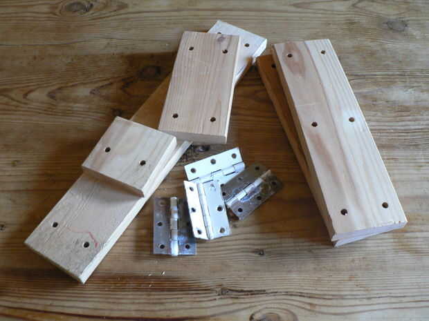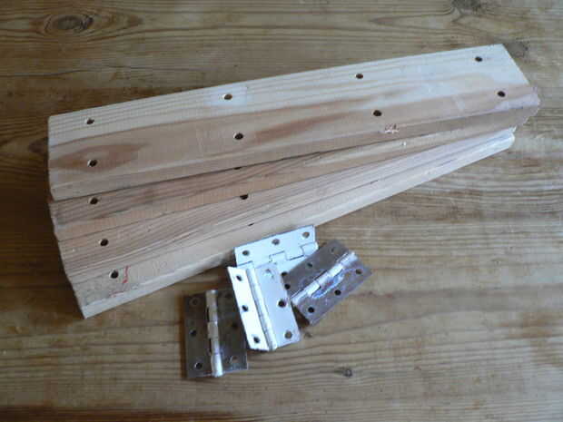 La madera que elegí era de un sistema de estantes de Ikea, aprox. 18mm (3/4") de espesor y 90mm (3 1/2") de ancho. Tenía varios candidatos para la madera, pero eligió esta porque era ligeramente más ancha que las bisagras y también resistente.