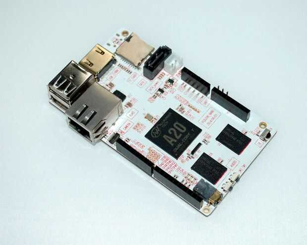 Esta pequeña computadora cuenta con un procesador Allwinner A20 dual-core ARM Cortex-A7 con soporte para Android y Linux. Cuenta con gráficos de brazo Mali-400, 1GB de RAM, 4GB de almacenamiento flash integrado, un lector de tarjetas microSD, salida HDMI, 2 puertos USB host, 1 puerto USB OTG, un conector de audio de 3,5 mm y Gigabit Ethernet. También es un receptor IR en caso de que desee utilizar un control remoto inalámbrico y una toma de corriente SATA host. El equipo pequeño mide 3.6″ x 2.1″. Para los desarrolladores, también hay GPIO, UART y otros pins y los conectores Arduino mismo que se encontraría con un Arduino UNO. Esto le permite conectar existente Arduino Shields para agregar Bluetooth, una pantalla táctil o más para fines de desarrollo de pruebas o de hardware. La noticia original de que se puede encontrar