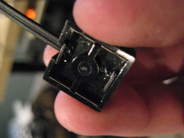 Miré alrededor de la casa para un conector de aceptable, con la esperanza de que encontraría algo con el mismo espaciado de pines, pero es un diseño poco común y un espacio. Decidí que la mejor ruta y luego sería colocar el conector en la parte externa de la computadora portátil y que agregar una función para evitar daños de accidentes similares. Al final colocó en un alambre de lego technic, como tira aparte bajo estrés, puede el amperaje de los implicados y es una solución modular de bajo costo. (Teniendo en cuenta que no son responsables si su proyecto coge el fuego y otros daños sucede lo).