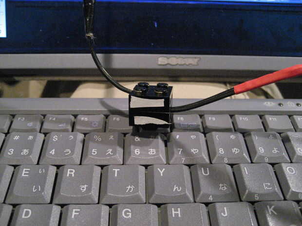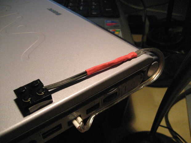 Si todo funciona, utilice pegamento CA para dirigir el cable externo y colocar el extremo del ordenador portátil del conector donde usted lo desee.