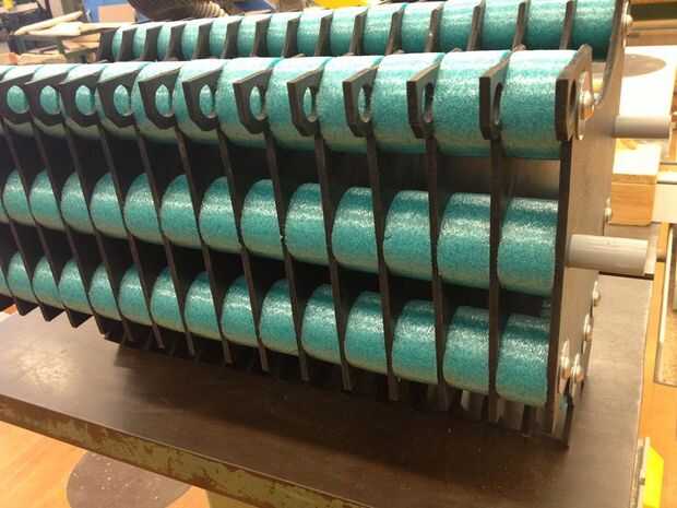 Aquí es una vista lateral de la Asamblea con espacios de 15 tabletas.