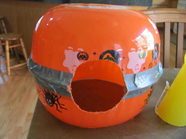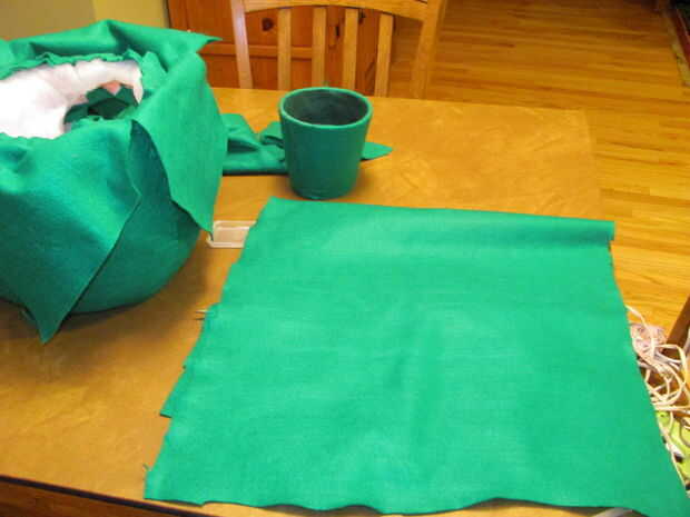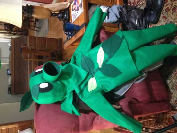MY Grandson Justin wanted to be a Peashooter for Halloween. Esto es lo que pude llegar a él. Lo siento por las fotos desorientadas. No importa cómo lo he probado no puedo conseguir a subir en el punto de vista correcto.