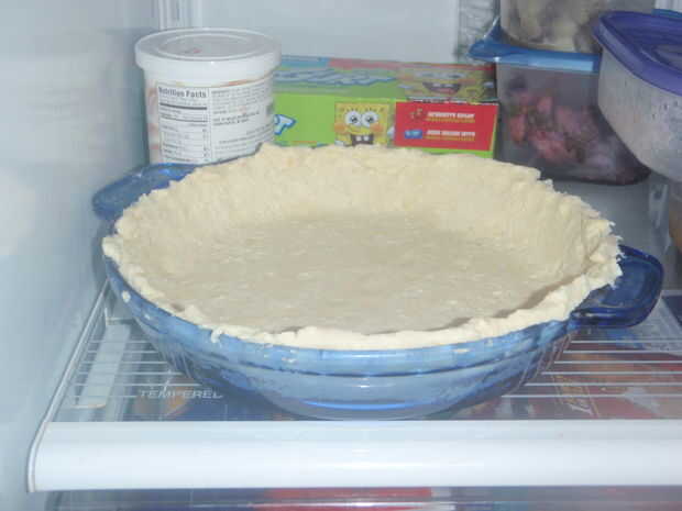 La clave de corteza escamosa, verás, es grasa fría. Hasta ahora voy a congelar la cuchilla y el tazón de mi procesador de alimentos. Cuando he rodado la masa hacia fuera y lo consiguió en la tartera, se queda en la nevera hasta que eche en mi relleno. Mantenga esa corteza fría, mantener que la grasa fría y usted será recompensado. Puede prensar el borde todo el estilo de lujo, demasiado.