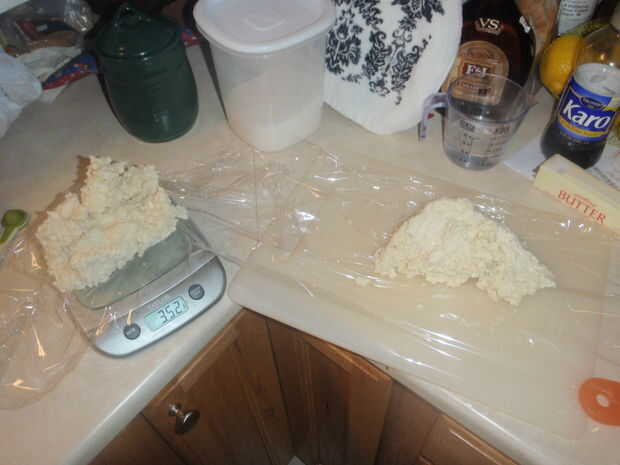 Dividir con mi báscula, envuelva en plástico y dejarla descansar por lo menos una hora.