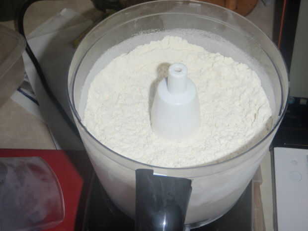 Insisto también en la facilidad de un procesador de alimentos. Tamizar seco con ella, cortar la grasa. Cuando las cosas se ponen bonitas y desmenuzable, pasar a un bol frío mezclar alcohol y gotee en el agua. Se pondrá pegajoso, así tan pronto como usted vea que une, que es mezclado y listo para enfriar aún más. No necesita mucha agua, y no es necesario incluso el ron. Voy empezar con el ron y moverse hacia el agua. Para otras masas, usted puede mezclar vodka y agua igual, pero el ron realmente tiene buen sabor en esta corteza.