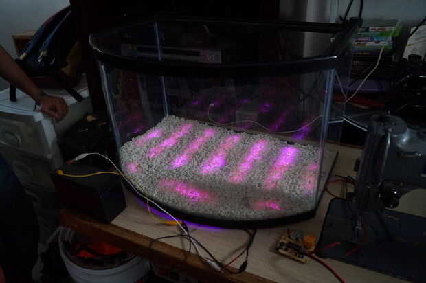 Está diseñado para una pecera de 40L, utilizamos tiras de LED violeta pero usted puede usar su color favorito :D