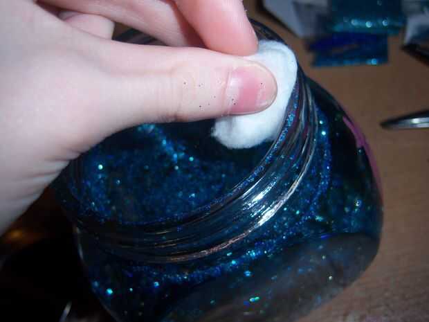 Si usted utiliza demasiado brillo, no se preocupe! Utilice una bola de algodón para empapar un poco de brillo en la superficie.