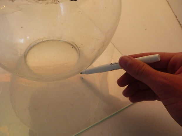 Voltear el recipiente boca abajo y dibuja un círculo alrededor de la base del recipiente. Trace el lado que es lo contrario de la tapa.