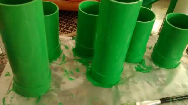 Primero corte los tubos de pvc y las juntas después de limpiarlas empecé a pintar sobre ellas, solo se necesita no dejar secar muy bien la pintura cualquier acrilica toxica funcionara o epoxi.