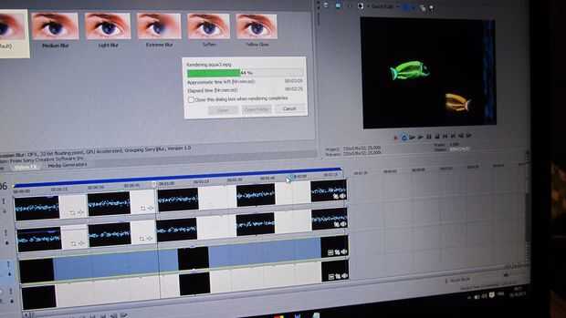 Las criaturas fueron creadas de imágenes 2D. Fueron editados en Gimp. La aleta está animada en Vegas Pro. El contraste de las animaciones se encuentra casi al máximo.
