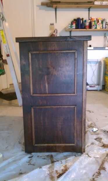 Use un cepillo de espuma para aplicar el tinte en el stand. Deseada la oscuridad de la mancha determinará cuánto tiempo la mancha se encuentra en la madera y cuantas capas son aplicadas. Sólo asegúrese de que al aplicar el tinte, en el sentido de la veta de la madera, aplicar uniformemente y utilizar un movimiento continuo a través de la madera. Aplique una cantidad abundante de manchas a un lado del soporte y déjelo reposar de 5 a 15 minutos. Cuanto más espere, más oscuro será. (Nota: no dejar exceso mancha seca sobre madera) Si no está seguro de cómo oscuro desea que la madera, utilice un retal del mismo material para probarlo. Después de 5-15 minutos Limpie el colorante sobrante con un trapo limpio en la dirección de la veta y repita los pasos anteriores al otro lado hasta que se acaban todos los lados y parte superior. Permite el soporte secar de 4 a 6 horas. Condiciones atmosféricas afectarán el tiempo de secado, para que dejarlo a sentarse durante la noche es el mejor. Una vez seco el soporte, utilice los pasos anteriores para aplicar una segunda o tercera capa de manchas para que sea más oscuro si se desea. Una vez satisfecho con el color, permite soporte para secar durante 8 horas.