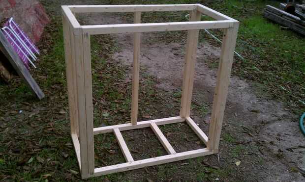 Mientras que Marcos de sujeción para formar la base, asegúrese de que los componentes de los madera se vuelcan hacia el exterior del gabinete. Esto ayudará a mantener al ras de la madera al clavar en más tarde. También comprobaremos que la base se queda cuadrada.