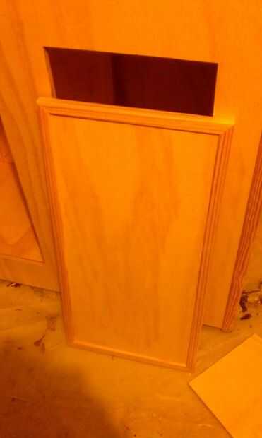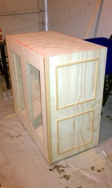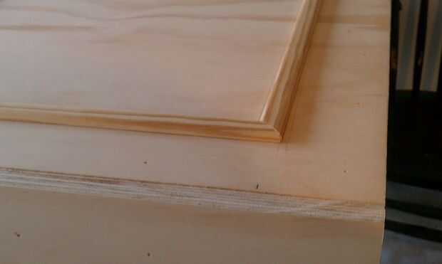 Para las puertas delanteras, uso 3/4 esquina corte todos los bordes. Cortar las esquinas en ángulos de 45 grados con una sierra de inglete. La longitud total de la guarnición debe ser de 15" para las tapas y los fondos y 30 1/2" para los lados — precaución — ya que todos trim no es exactamente el mismo ancho, estas mediciones deben verificarse, asegurándose de que encajen firmemente alrededor de las puertas y los cortes de 45 grados están apretados juntos. Pueden hacer ajustes si es necesario.