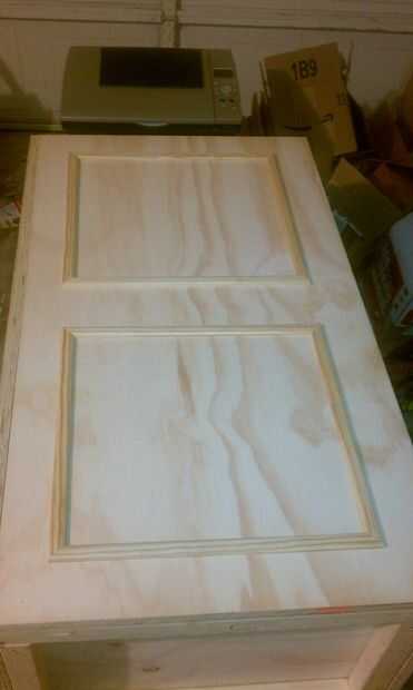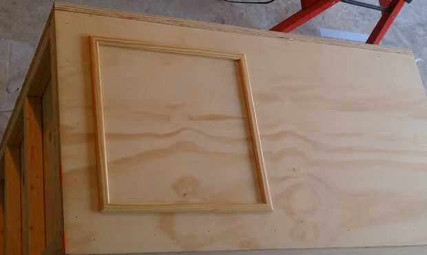 (Nota: el tamaño de la puerta real es 14 1/2 "x 30". Esto significa que el interior o extremo corto 45 grados cortado en la moldura va a ser el mismo). Una vez que las mediciones se verifican para ajuste, aplique el pegamento Sujete en su lugar y dejar secar.