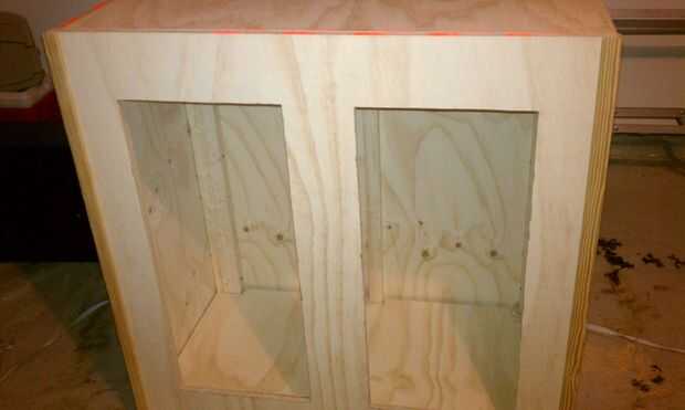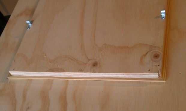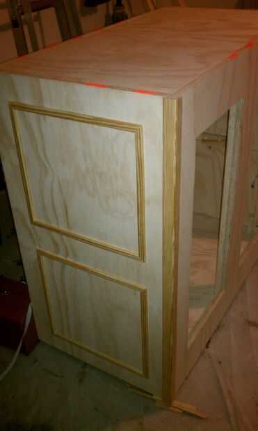 Una pulgada esquina recorte fue utilizada para cubrir los dos bordes de la madera contrachapada en las esquinas frontales del gabinete (Figura 8). Se necesitan dos piezas 38 1/4" de largo. Pegamento, sujete en su lugar y dejar secar.