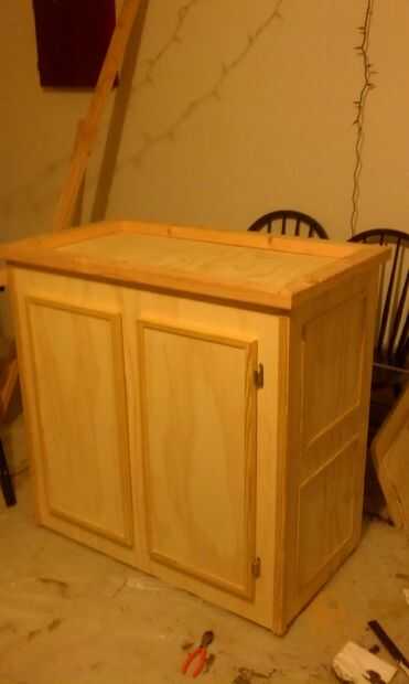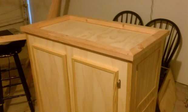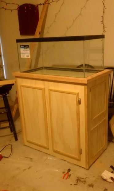 La moldura superior estaba hecha de 2 x 3. Es la forma más fácil de hacer el ajuste fijar el tanque donde se desea. Luego trace una línea con un lápiz alrededor del tanque para la colocación. Corte de 2 x 3 41 1/4" para el frente y atrás y 23 1/4" para los lados. Una vez que se cortan a la longitud correcta, use una sierra de ingletes para cortar las puntas a un ángulo de 45 grados. Si todo encaja alrededor del tanque y las esquinas son buenas, sujetar las esquinas con clavos o tornillos. Una vez que tenga la moldura superior todo juntos fijarlo al soporte. Clavar o atornillar la moldura de la parte superior hasta la base es la forma más fácil para asegurar el ajuste. No quiero ver los clavos / tornillos así que atornillado el ajuste al soporte desde el interior del stand. Uno o dos tornillos en cada lado es todo lo que es necesario a menos que se utilizará para el soporte de elevación. tornillos de 2 1/2" fueron utilizados y desde el interior marco en la moldura superior.