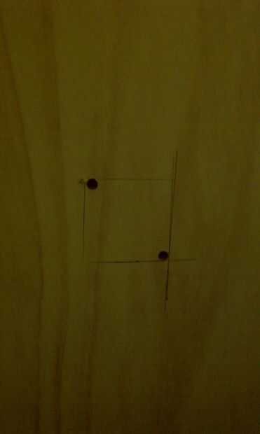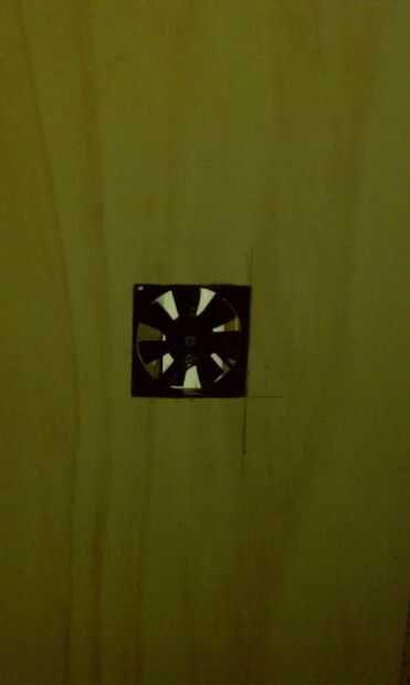 Los ventiladores pueden colocarse en cualquier lugar, pero son 6" de los lados y 11" de la parte superior. Trazar los ventiladores en la parte posterior del soporte donde desee. Perforar dos agujeros en enfrente de esquinas dentro de la Plaza (Foto 3) y corte con un jig vio del mismo modo como la puerta del colector de aceite. Asegúrese de que los fans de ajustaban y llevarlos a cabo hasta después de que la pintura mancha.